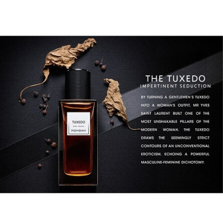 «تاکسیدو» از ایو سن لورن، عطری یونیسکس با شخصیت کاریزماتیک و حضوری خیرهکننده است. رایحهای گرم و اغواگر که با فلفل سیاه و نعناع هندی، حس جسارت و عمق را در هم میآمیزد و با لطافت وانیل، امضایی جذاب و ماندگار بر جای میگذارد. عطری شیک، مدرن و پرجذبه که مانند لباس شب کلاسیک، در هر جمعی نگاهها را بهسوی شما میکشاند.